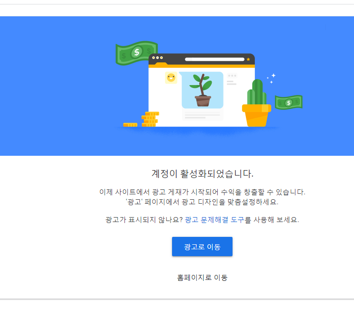 광고로 이동을 누르게 되시면 애드센스 홈페이지로 이동하게 됩니다.