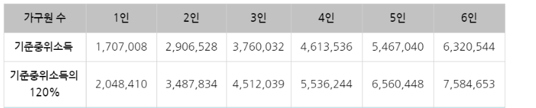 소득의 경우 중위소득 120% 이하 인자만 가능한데요,