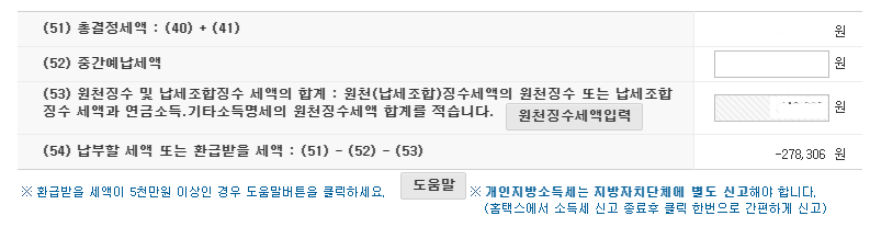 금액 부분에서 -가 나온다면 환급 받을수 있는 금액을 보여주는 겁니다.