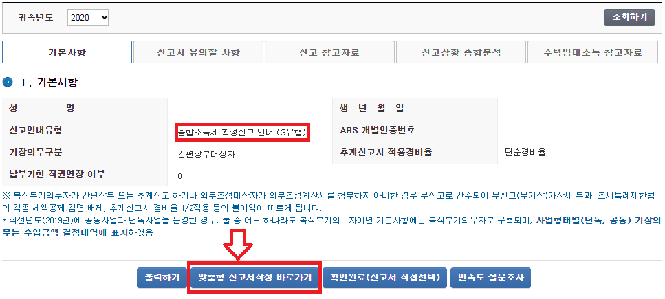 종합소득세 신고를 클릭하시면 다음과 같은 팝업이 뜰 겁니다.